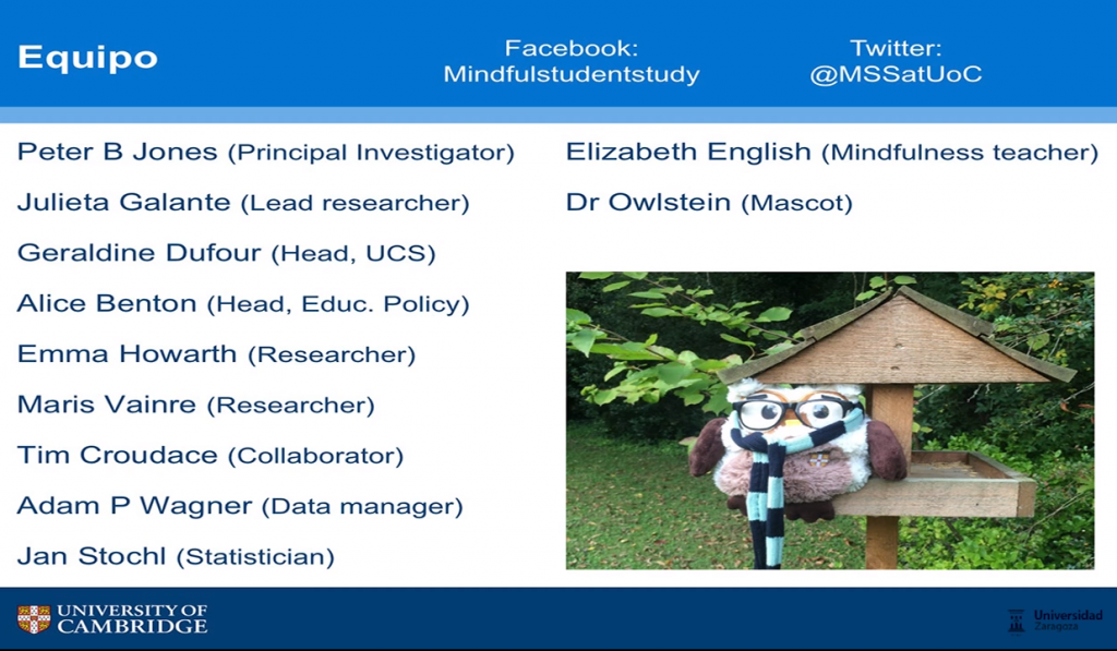Hoy encontré un video de Julieta Galante, una investigadora de Cognitive and Behavioural Neuroscience que realizó un estudio sobre mindfulness de altísima calidad en la universidad de Cambridge. El estudio fue ciego y aleatorizado, haciendo uso de una aplicación que automáticamente randomiza a los estudiantes en grupos para evitar cualquier tipo de interferencia por los investigadores. Hicieron uso de escalas ya ampliamente usadas en el reino unido, que resulta una oportunidad perfecta para evaluar a los resultados del mindfulness de forma rigurosa.