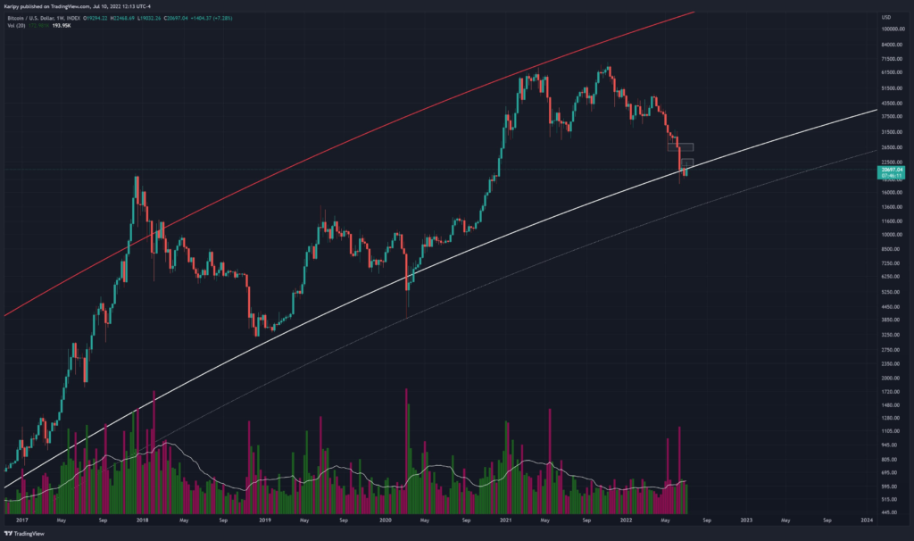 Como en todo, no hay garantías absolutas en el mercado, pero aquí va un ejemplo. Va una captura de cuando el precio aún estaba en un trend bajista. Link del tweet. Si te fijas en el gráfico de arriba, el precio rebotó en la segunda línea blanca que forma parte de la zona óptima de compra.