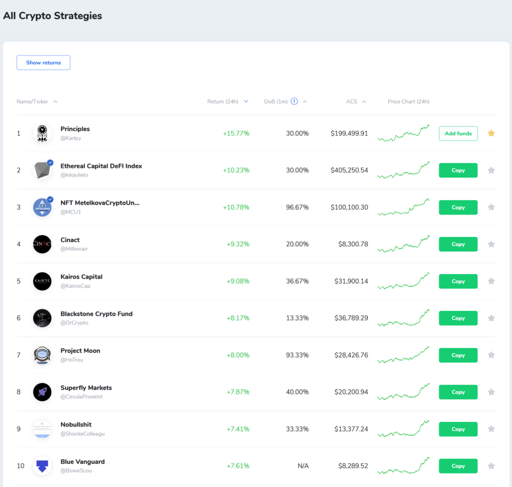 Recomiendo que uses la vista de comparación de estrategias para buscar un manager que más se acerca a tu gusto.