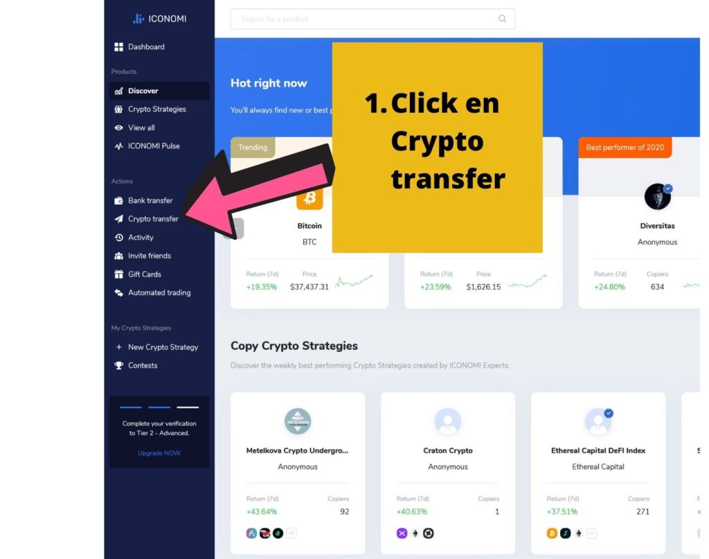 Una vez que tengas tus digital assets y se confirmó tu Tier 1, transfieres tus fondos de Binance a Iconomi.