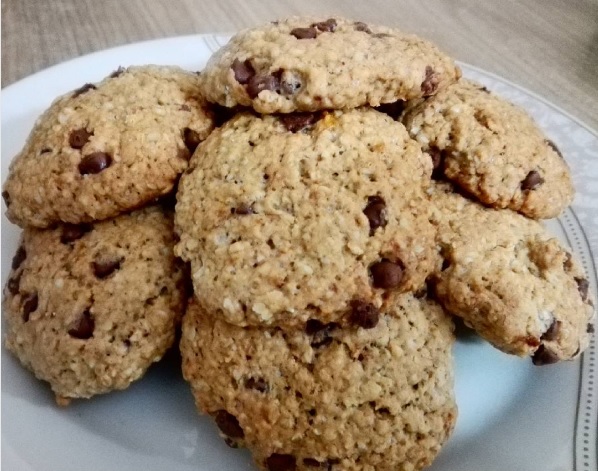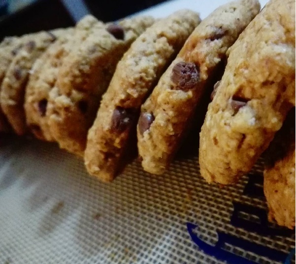 Preparalas: En un recipiente, uní todos los secos. Hacé un hueco. En el centro agregá todos los ingredientes húmedos. Uní la masa sin tocarla demasiado. Agregá los chocochips y formá los bollos, anda disponiéndolas sobre silpat/papel para horno y aplastalos levemente con los dedos . Horneálos a 180°por 10 a 12 minutos.