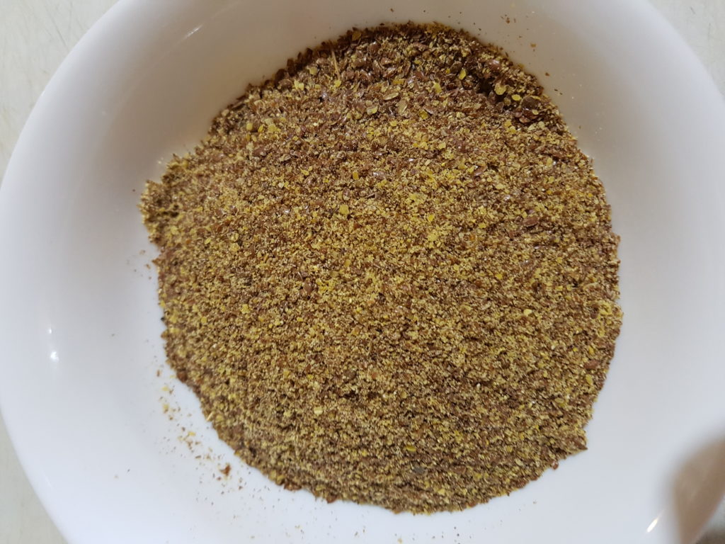 Las semillas de lino tienes que triturar en la licuadora, sin agua. Asegúrate de agitar a la licuadora y volver a licuar para que no se queden semillas enteras pegadas por los costados.