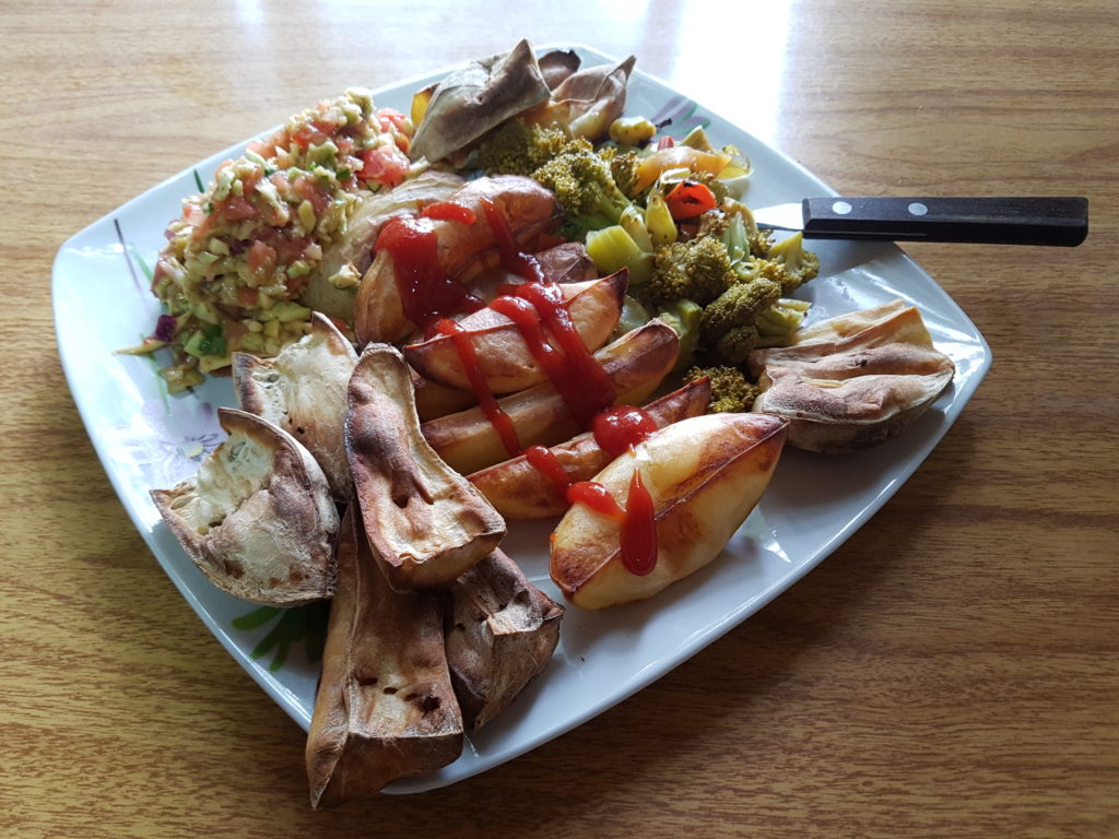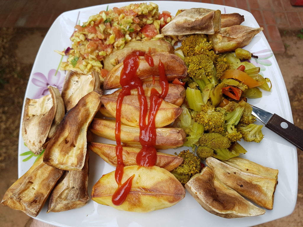 Debido a las peticiones que recibo por consejos de la cocina basada en plantas, aquí continuo con una publicación de mis recetas favoritas. Como la mayoría de mis recetas, esta también es fácil y rápido de preparar y no requiere de habilidades de cocina especiales. Es una excellente fuente de carbohidratos por lo cual recomiendo comer papas y batatas en abundancia para elevar a la energía para entrenar.
